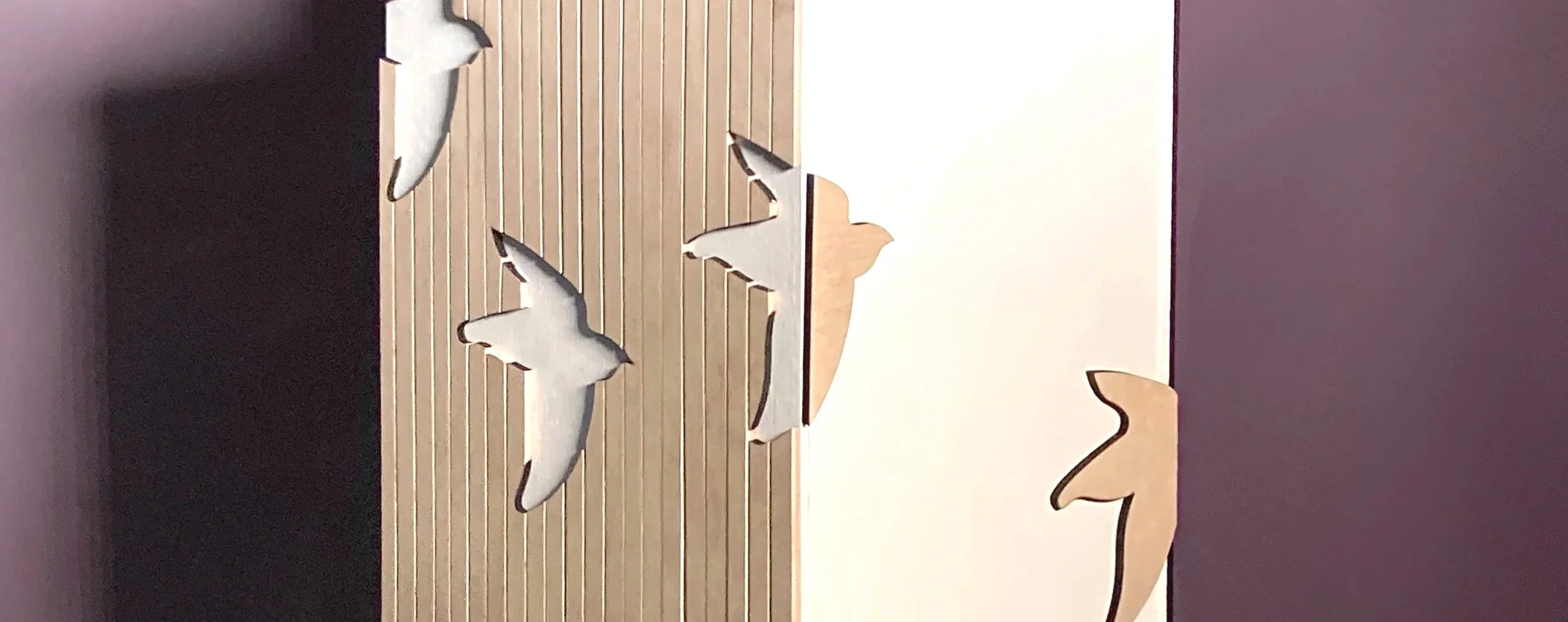 Existing solutions are about 15” squared and 4’-12’ tall in order to accommodate the thousands of birds that can nest together at a given time. I made mine as compact as possible at 4’ tall to make it approachable to the typical homeowner. My sketches were constrained to these proportions. I moved forward with concepts that mimicked aerial views and utilized dynamic swift silhouettes to add some energy to my plain form.